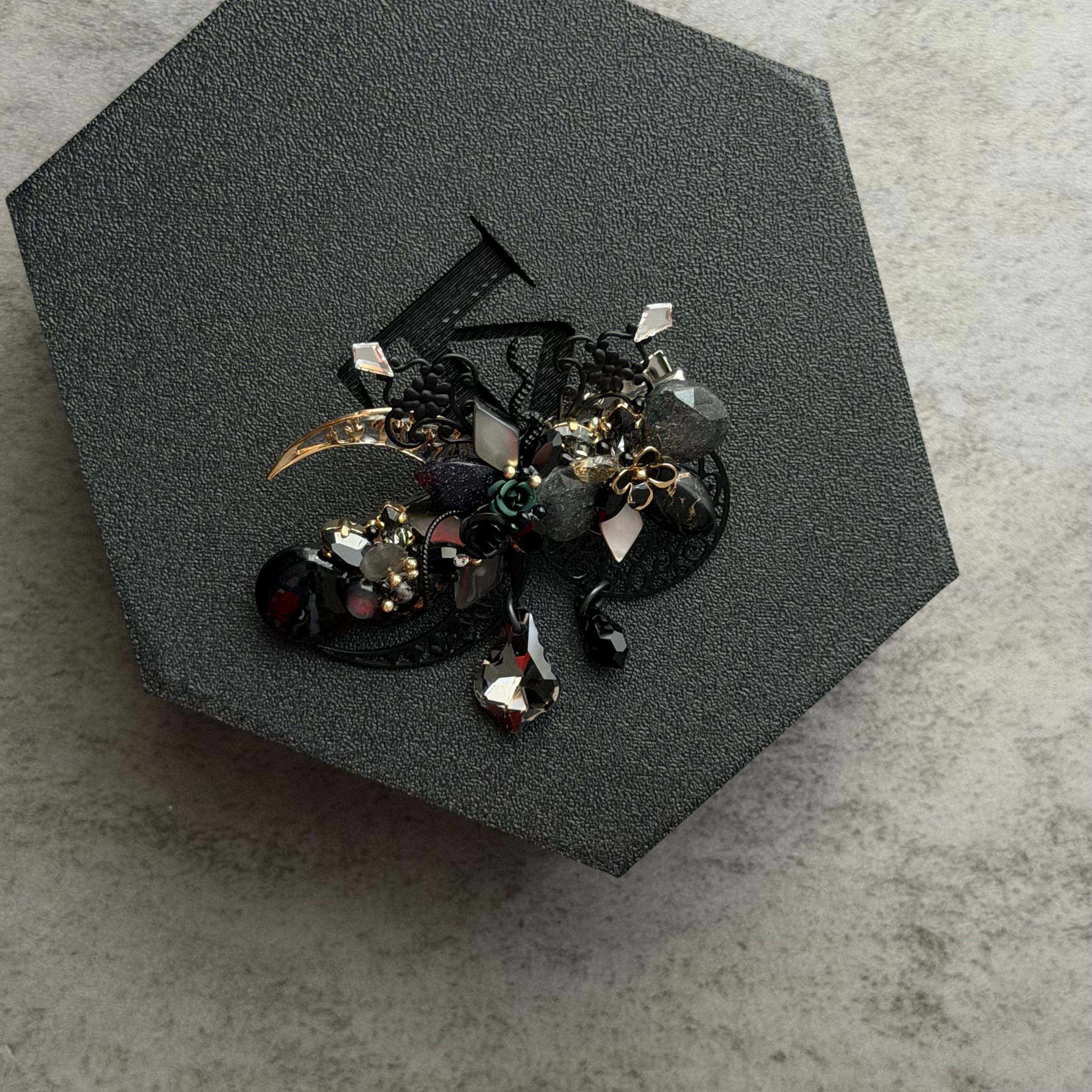 オブシディアン、サンストーン、ブラックシェル、グレームーンストーン、スピネルコッパー